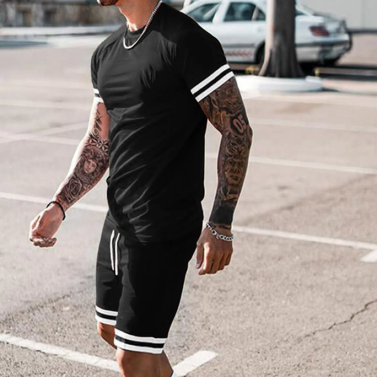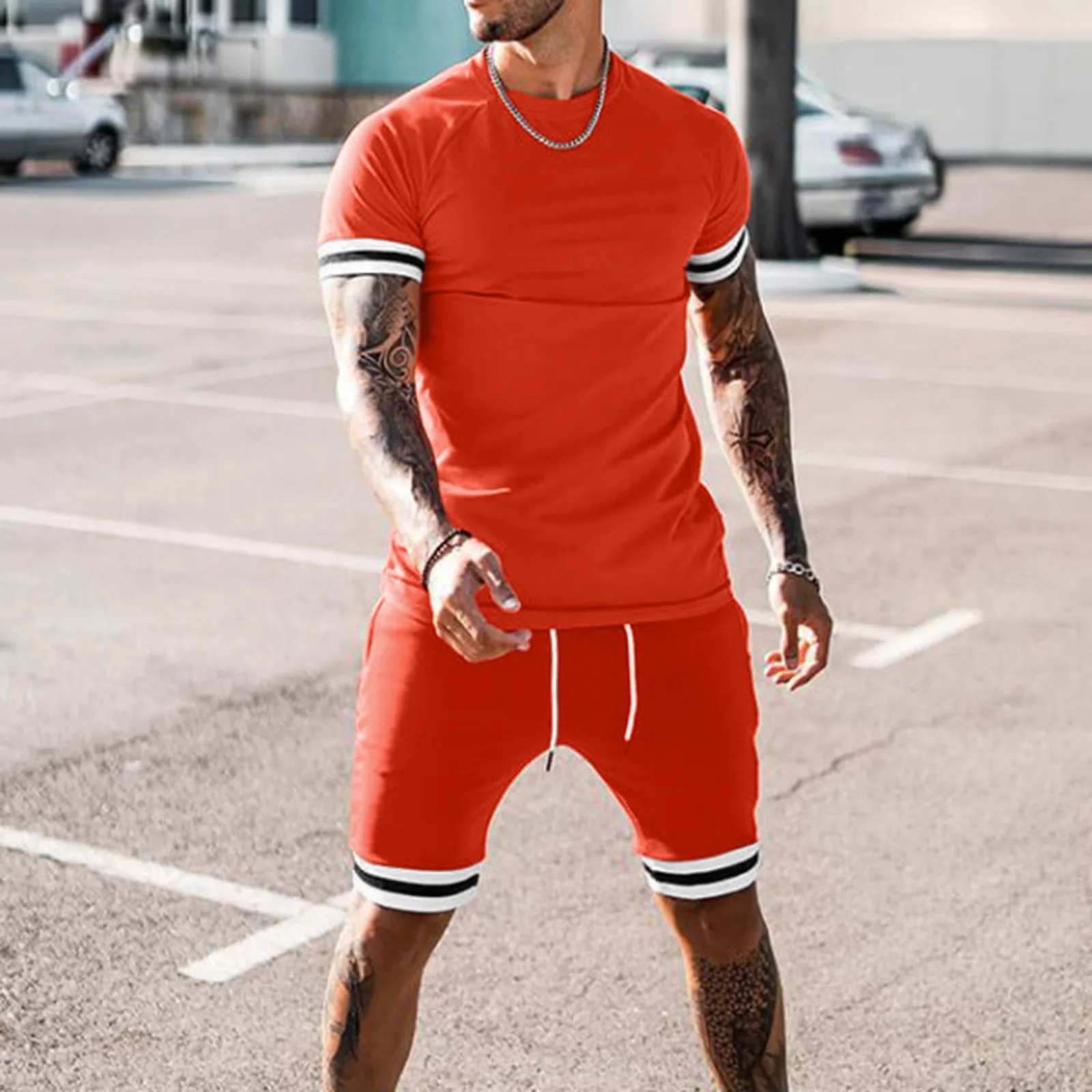 Men's Summer Loose Suit Short-sleeved And Shorts Sporty And Casual Round-neck Two-piece